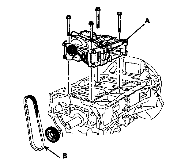 6. Remove balance shaft chain (B) and balance shaft module (A).