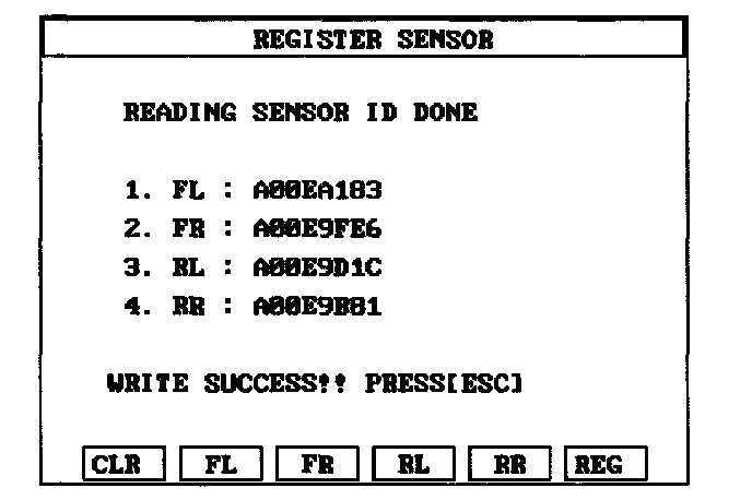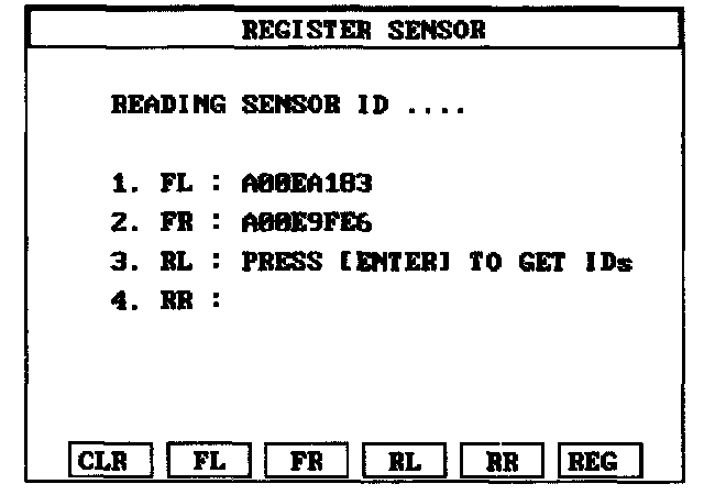 Sensor Initiating Procedure1. Read the four sensors ids starting with sensor 1 (1 normally front left, 2 front right, 3 rear left, 4 rear right).