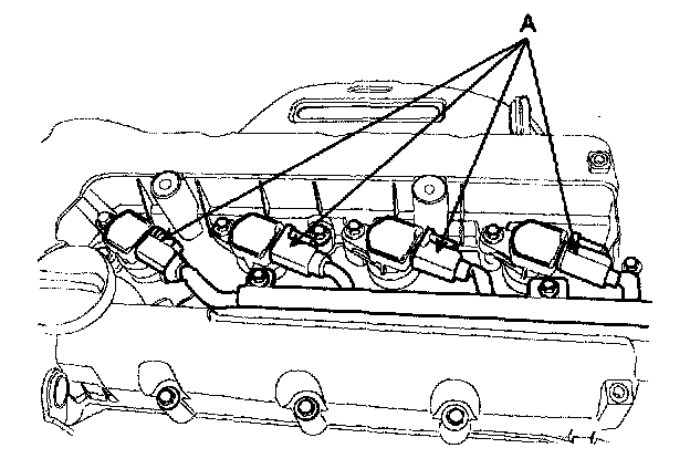 1. Remove the ignition coil connector (A).