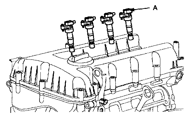 2. Remove the ignition coil (A).