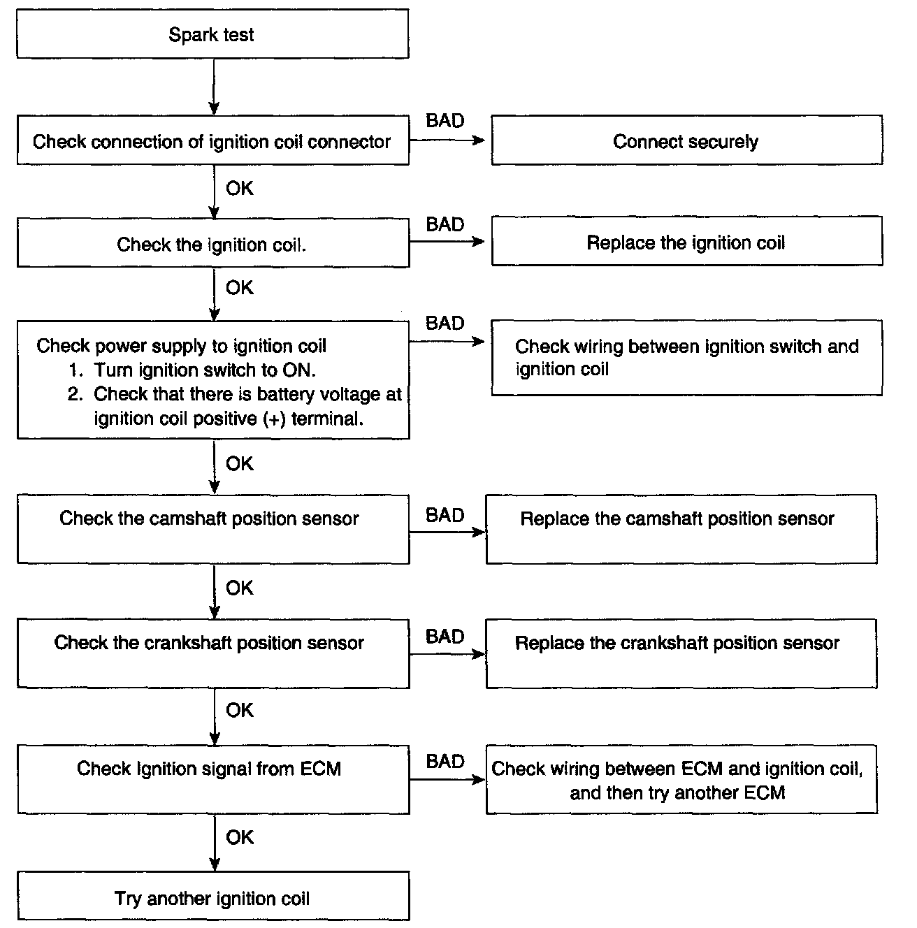 5. Check is spark occurs while engine is being cranked.