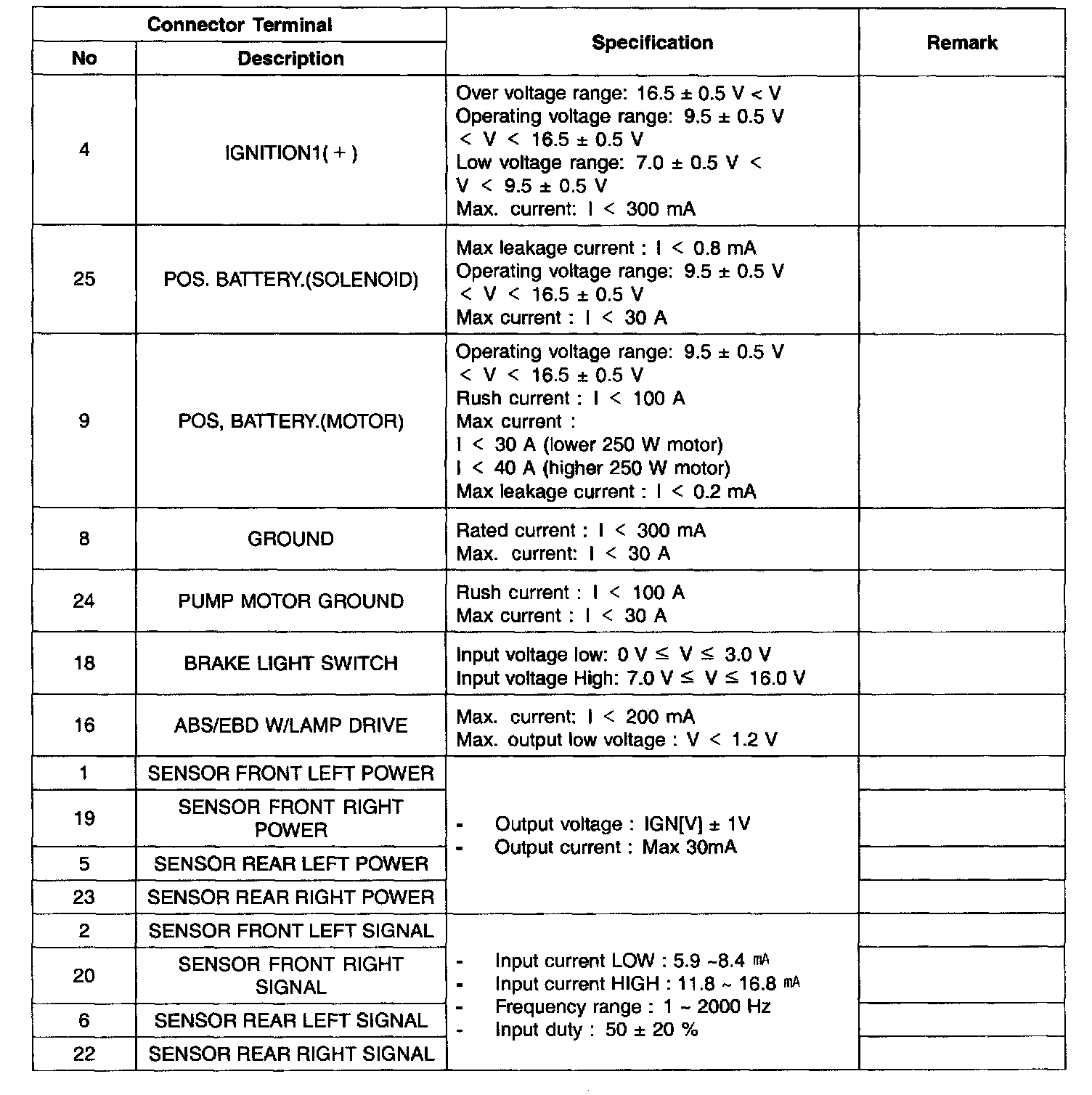 ABS CONNECTOR INPUT/OUTPUT Part 3: