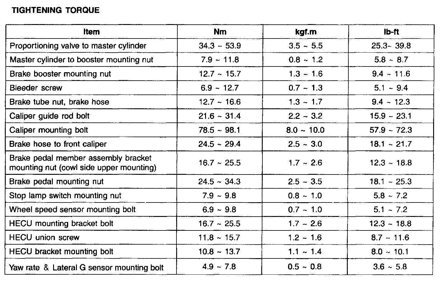 Tightening Torque