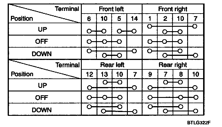 4. Check for continuity between the terminals in each switch position according to the table. If the continuity condition is not normal, replace the switch.
