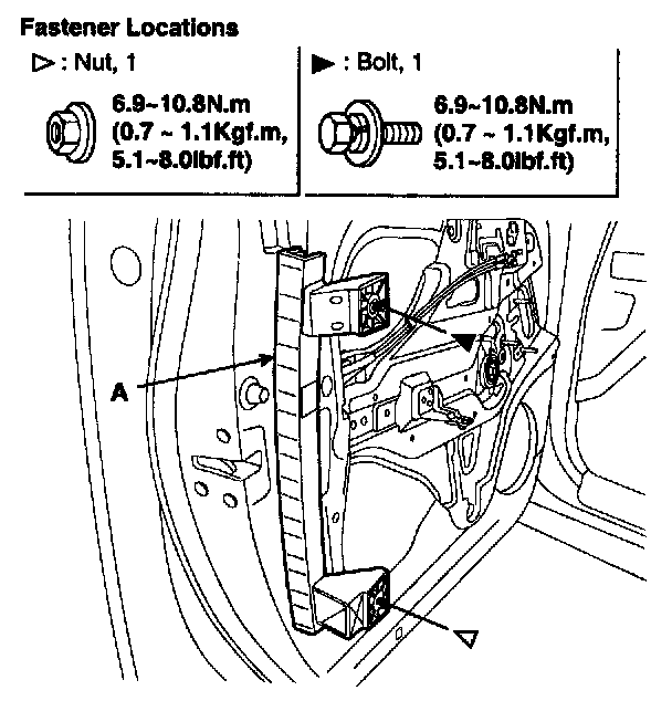 Loosen the mounting nut, then remove the rear channel (A).