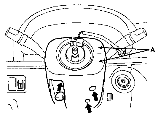 1. Remove the steering column upper and lower shrouds (A) after removing 3 screws.