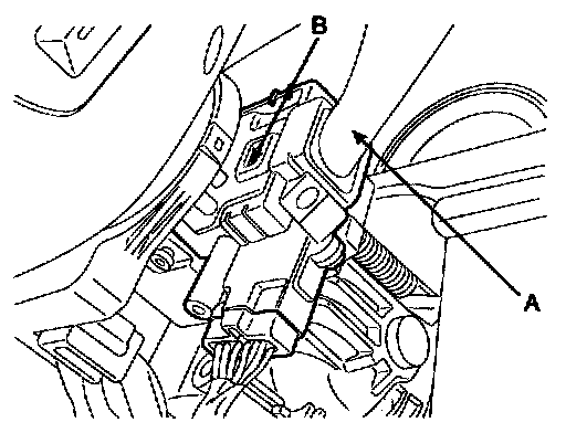 2. Remove the wiper switch (A) by pushing the lock pin (B) after disconnecting the connector.
