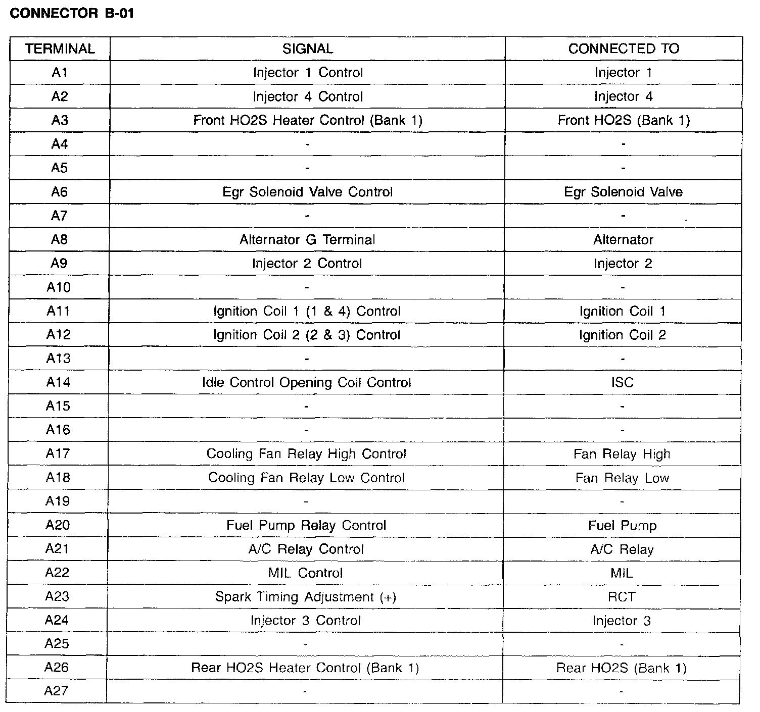 Connector B-01 (Ter. A1 - A27):