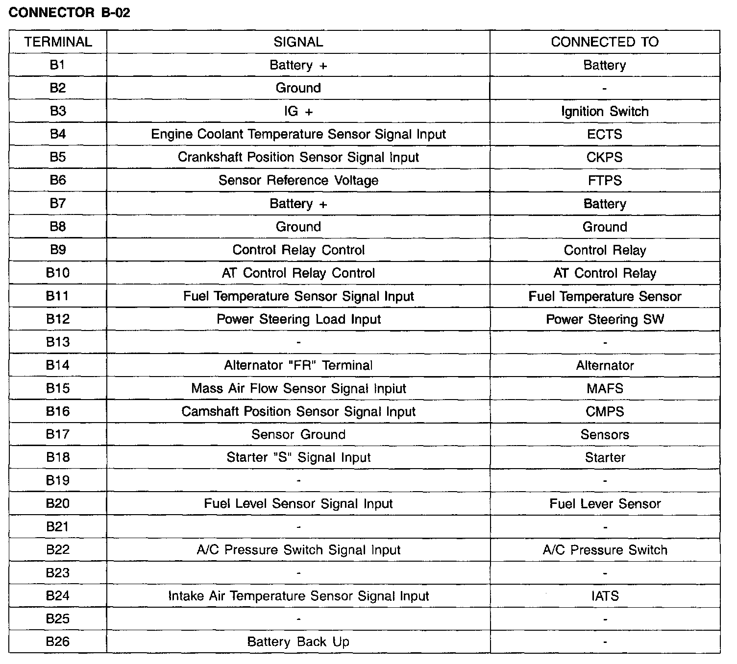 Connector B-02 (Ter. B1 - B26):