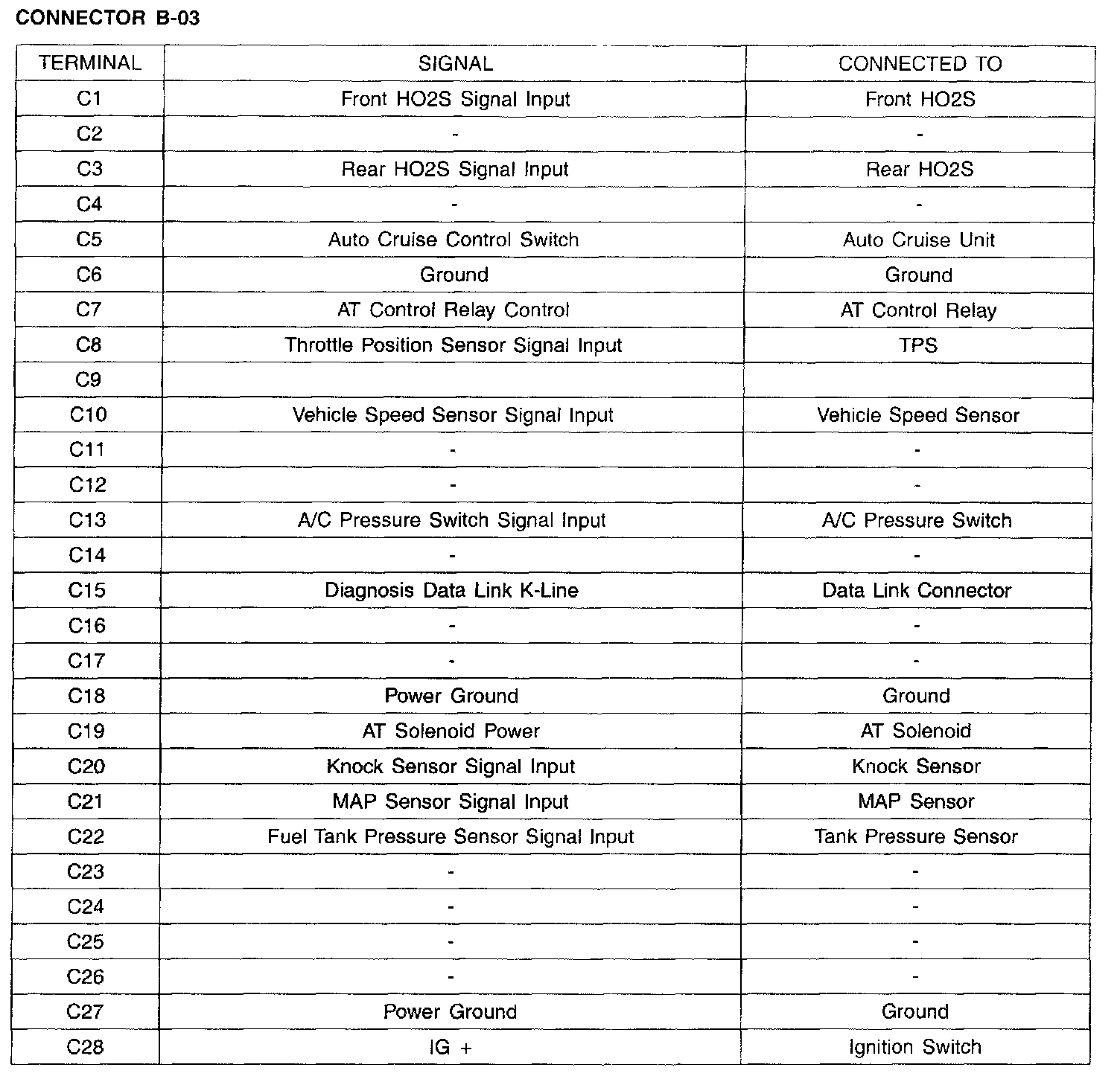 Connector B-03 (Ter. C1 - C28):