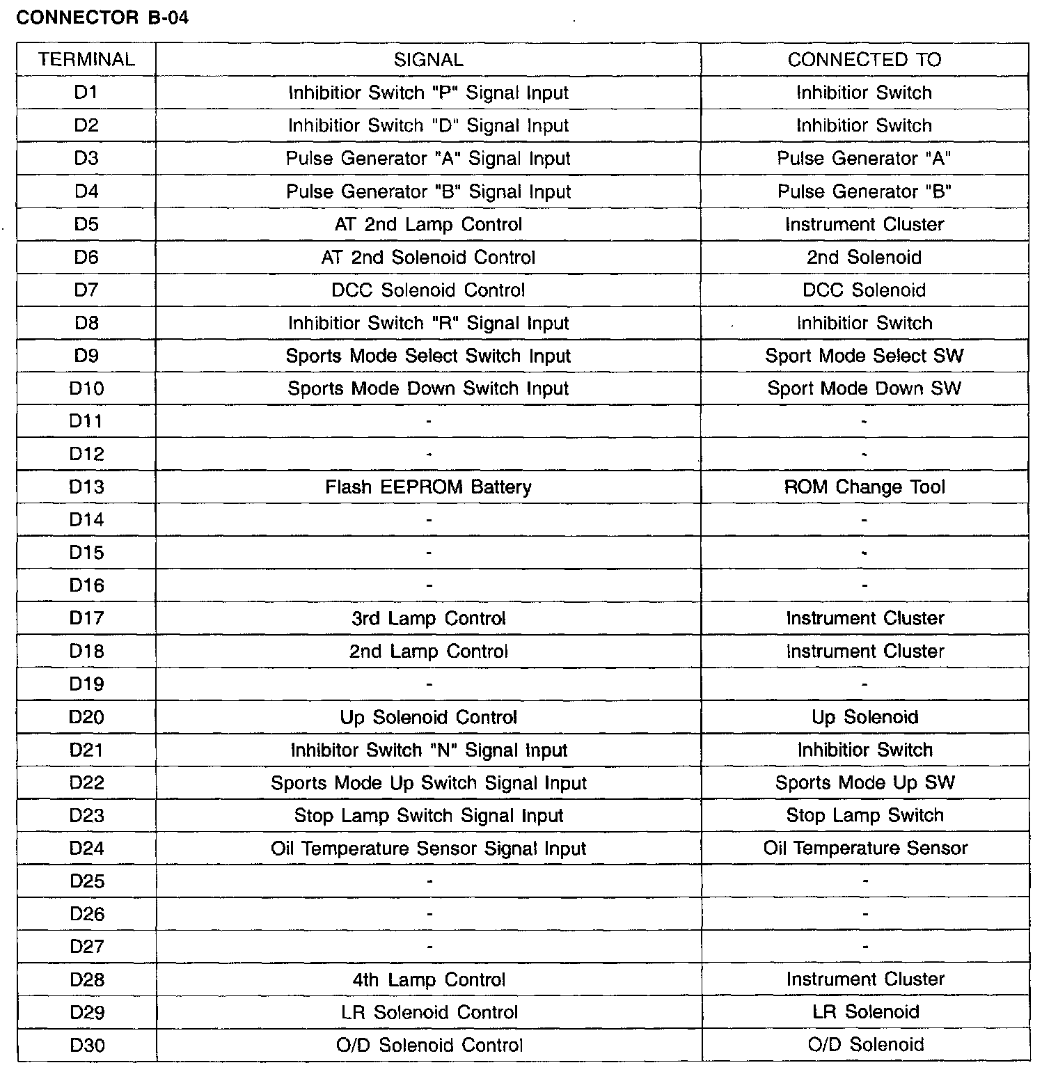 Connector B-04 (Ter. D1 - D30):
