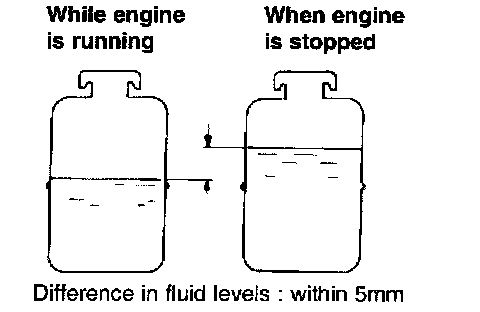 2) If the fluid level suddenly rises after stopping the engine, it shows that bleeding is not satisfactory.