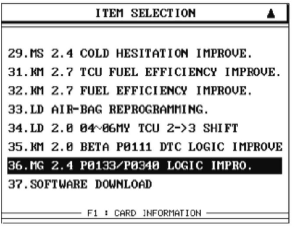 3. Select option "MG 2.4 P0133/P0340 LOGIC IMPRO." and press ENTER.