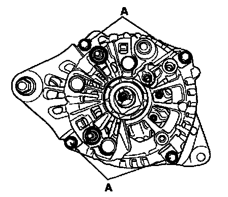 2. Loosen the mounting bolts (A) and disconnect the regulator assembly (C).