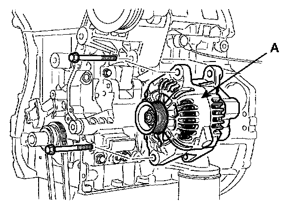 4. Pull out the through bolt and then remove the generator (A).
