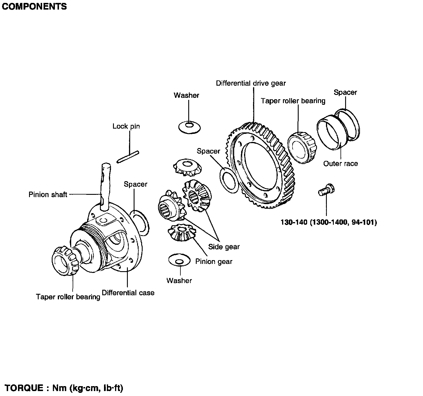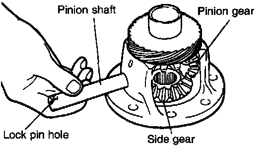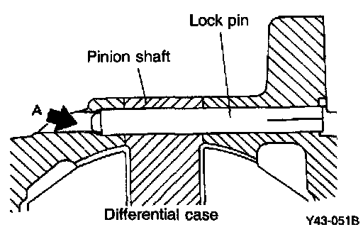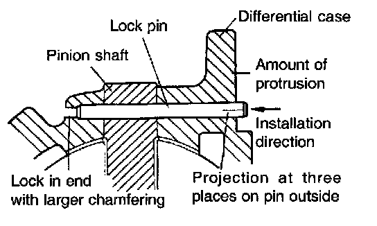 2) The lock pin head must not protrude more than 3 mm (0.0118 inch) gear in the differential case.