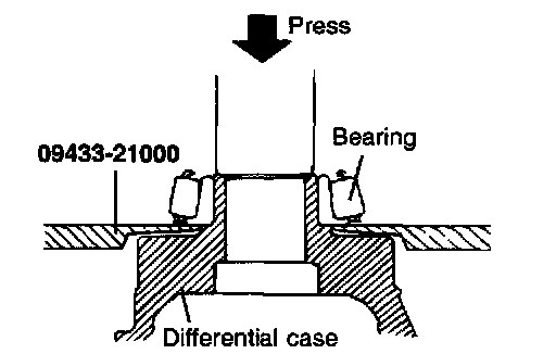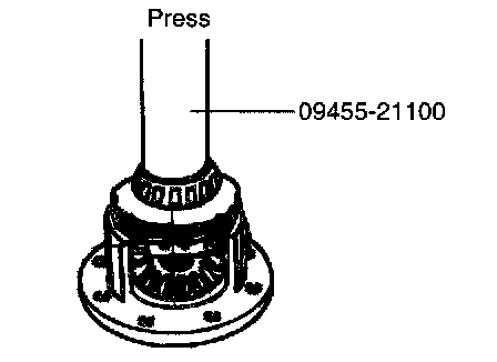 7. Install the tapered roller bearing on both sides of the differential case using the special tool (09455-21 100).