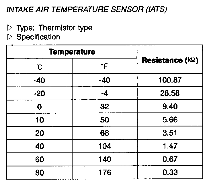 Air Temperature Sensor ( Ambient / Intake ): Specifications