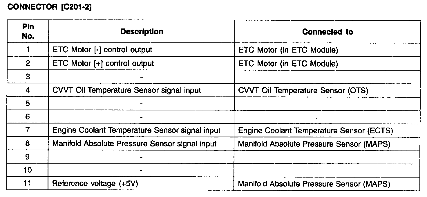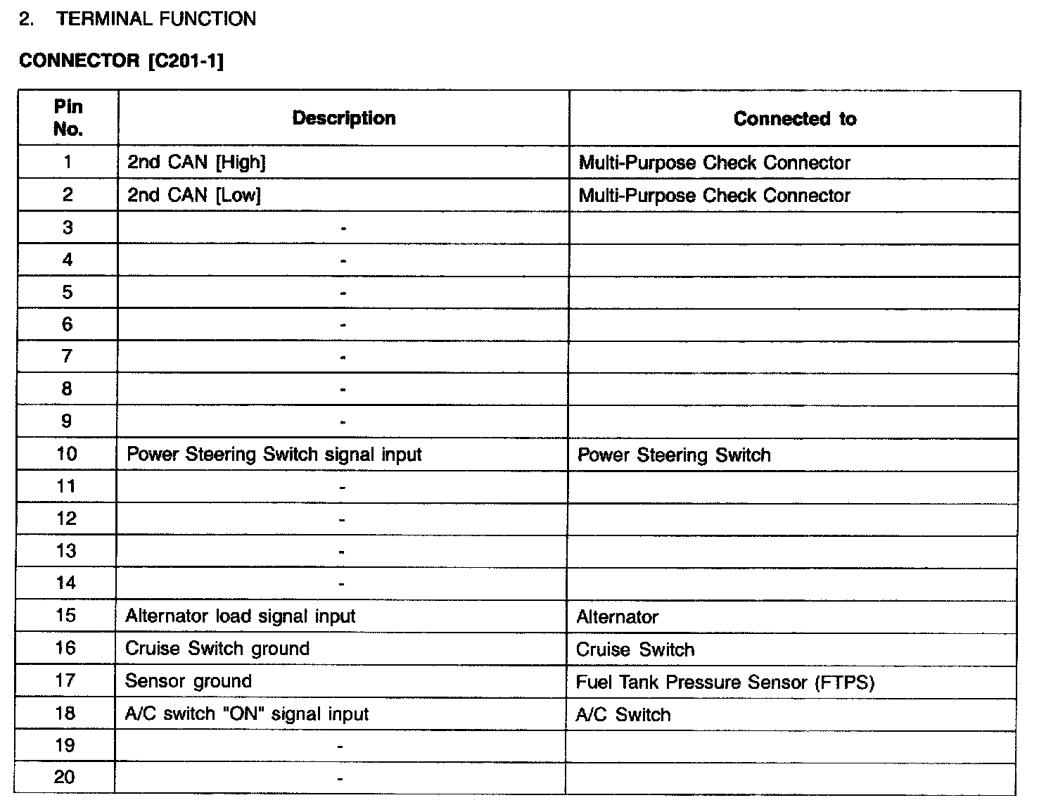 PCM TERMINAL FUNCTION - CONNECTOR (C201-2)
