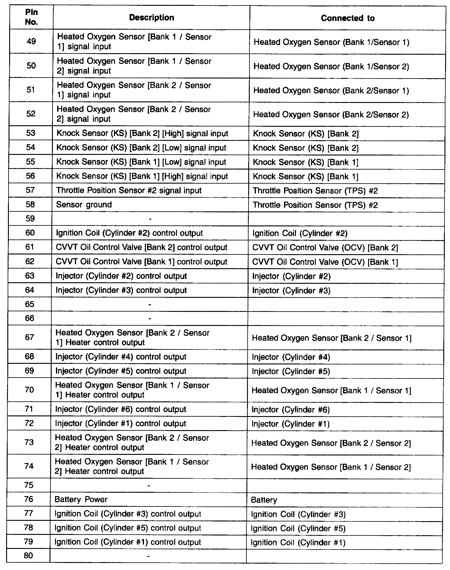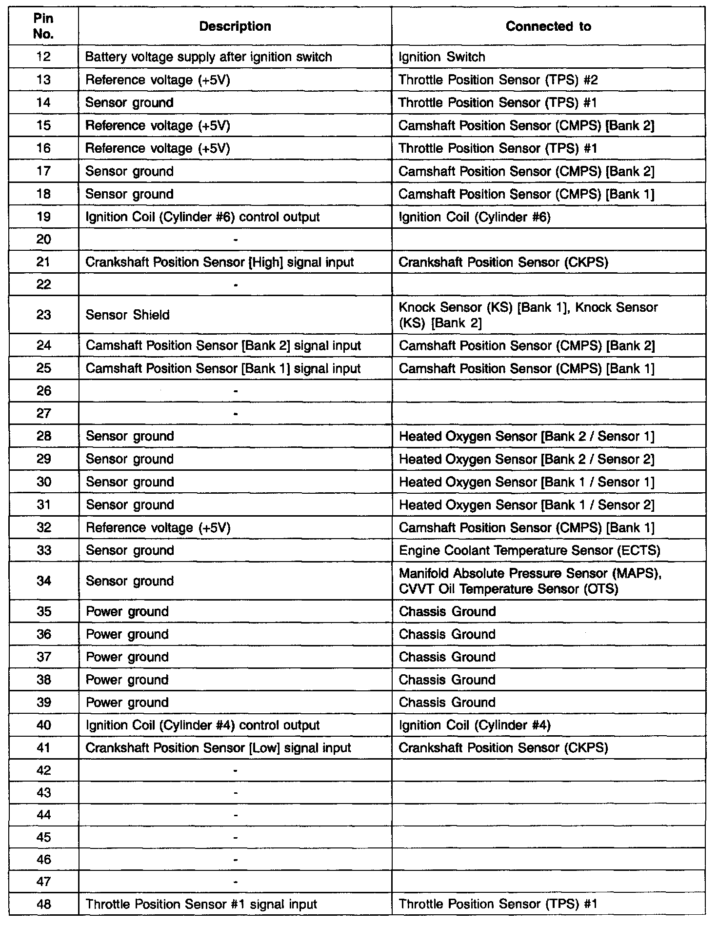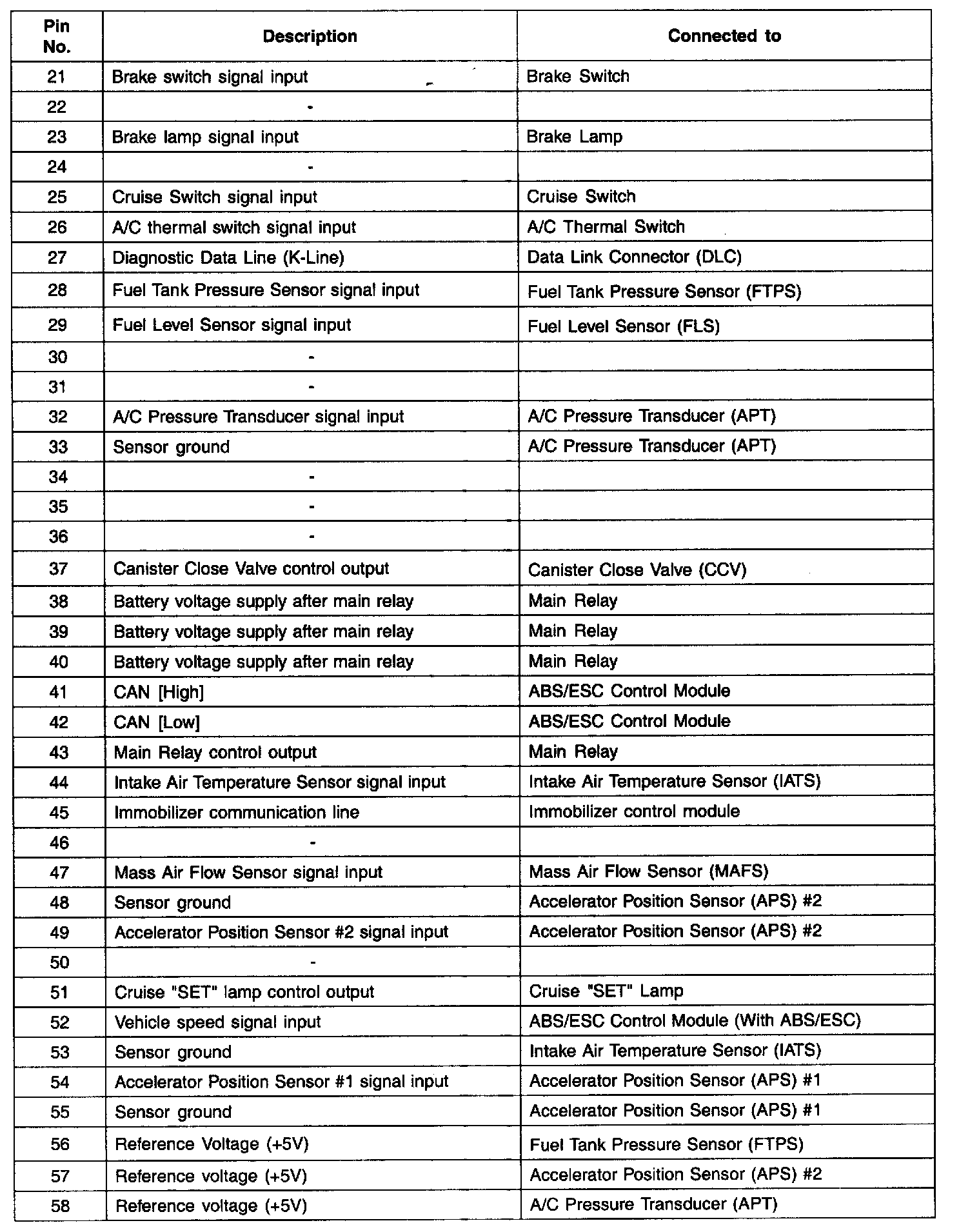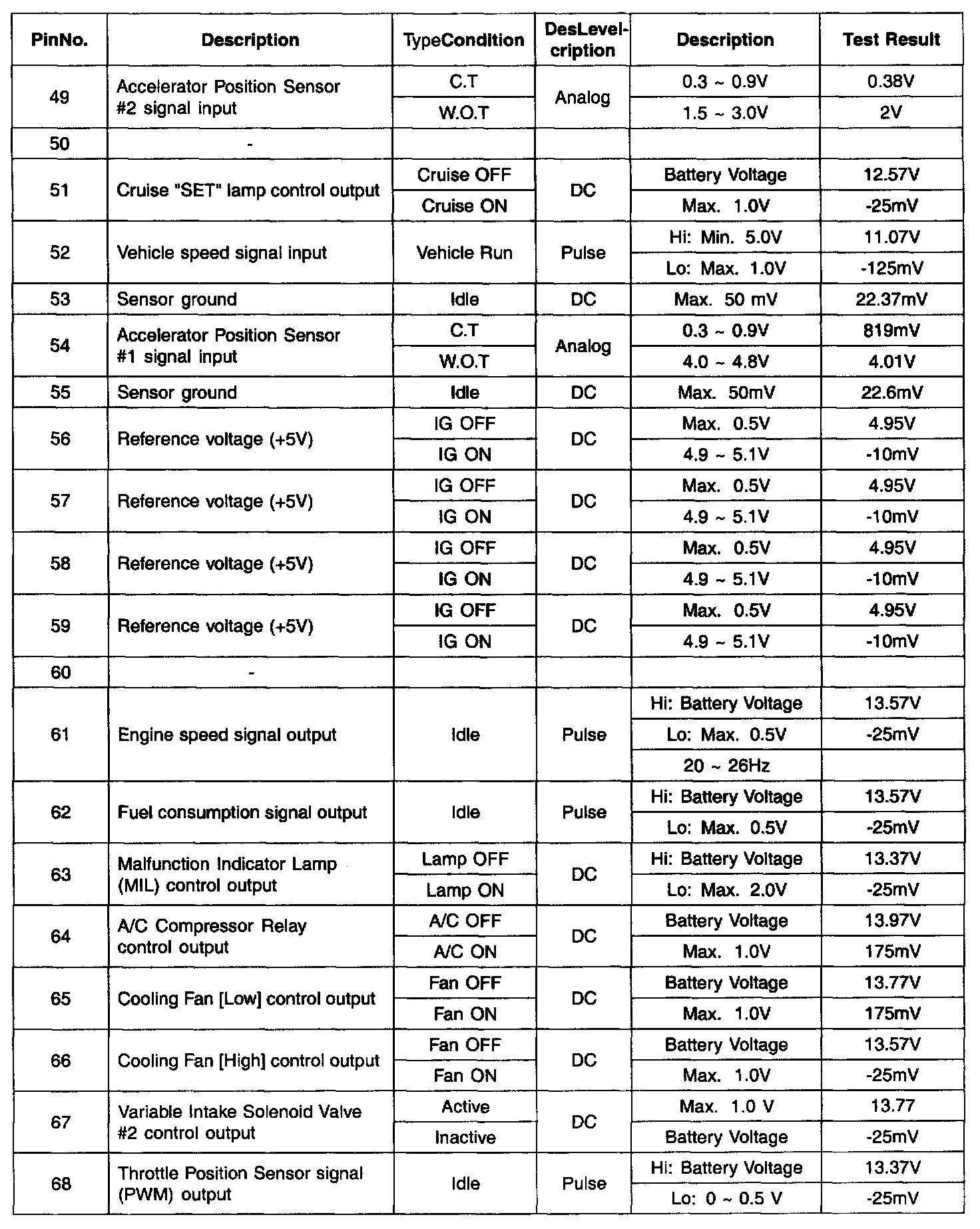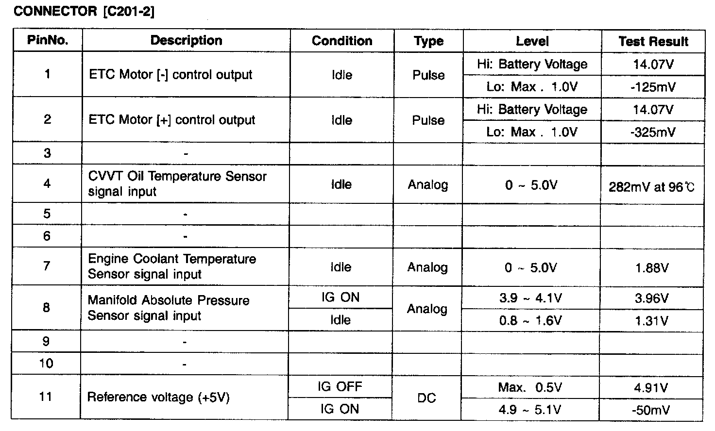 PCM TERMINAL INPUT/OUTPUT SIGNAL - CONNECTOR (C201-2)