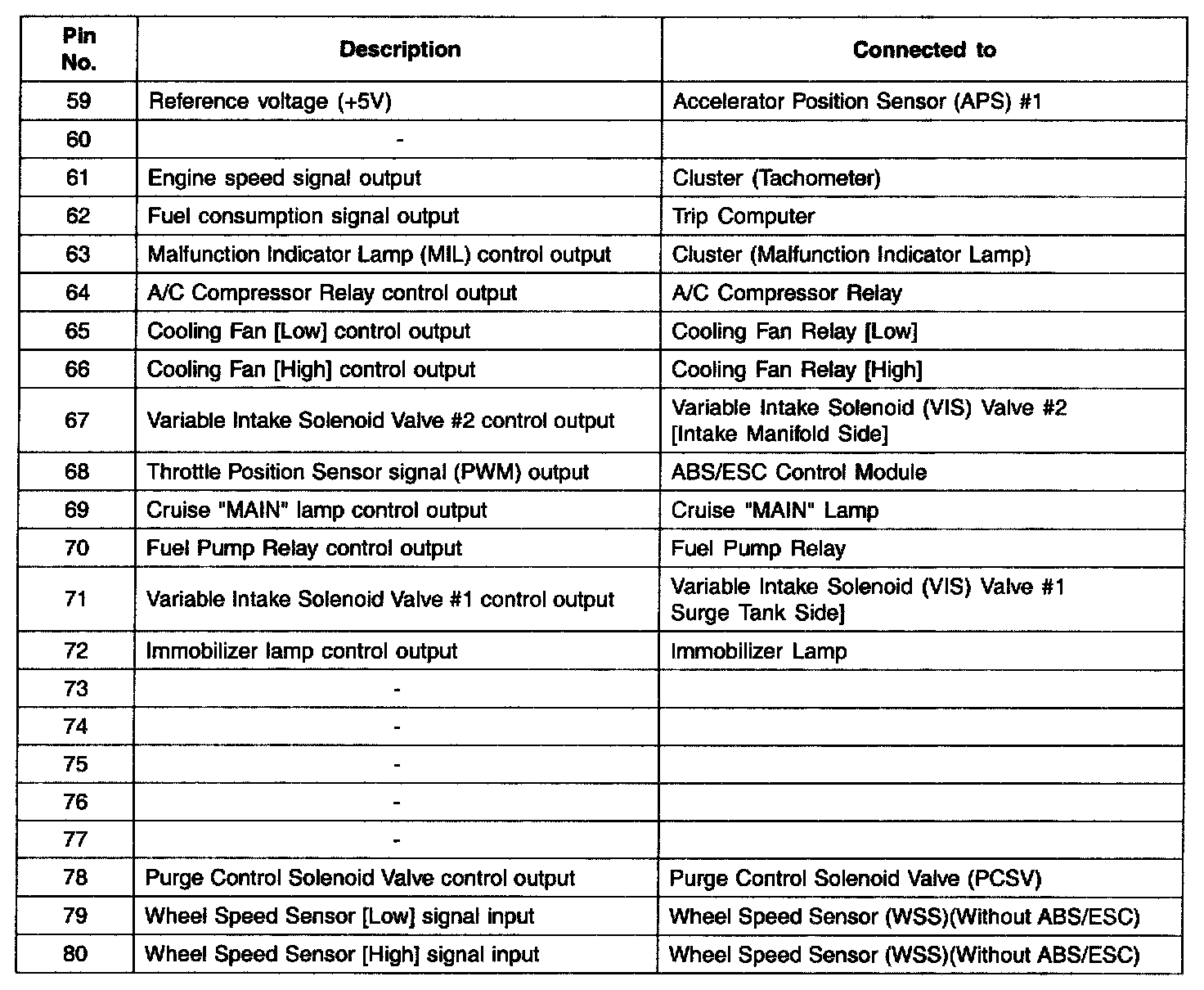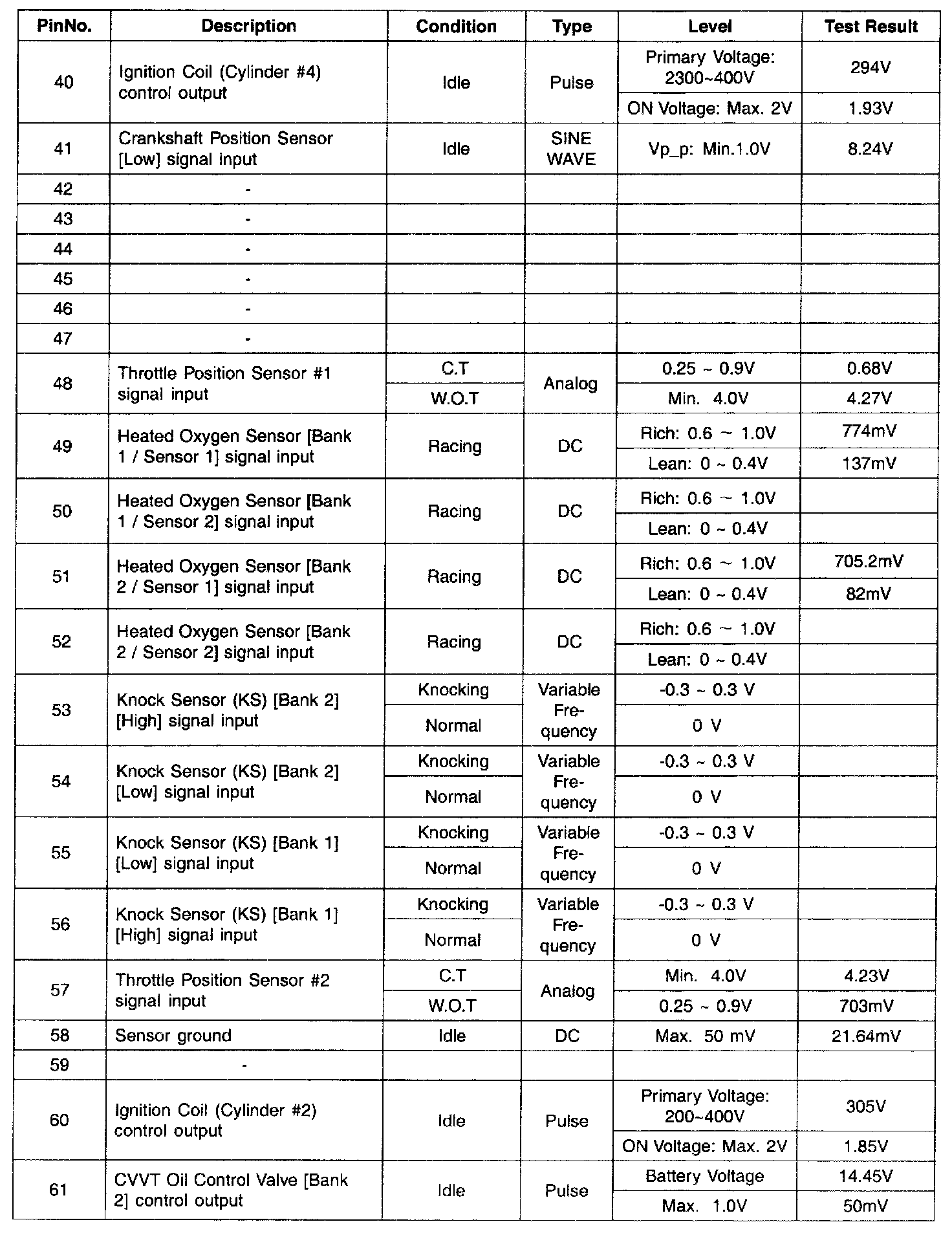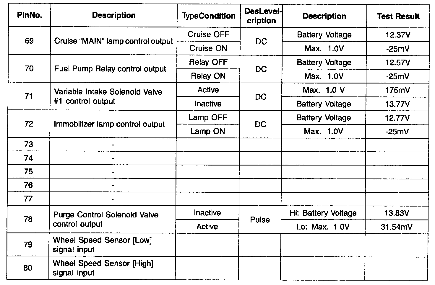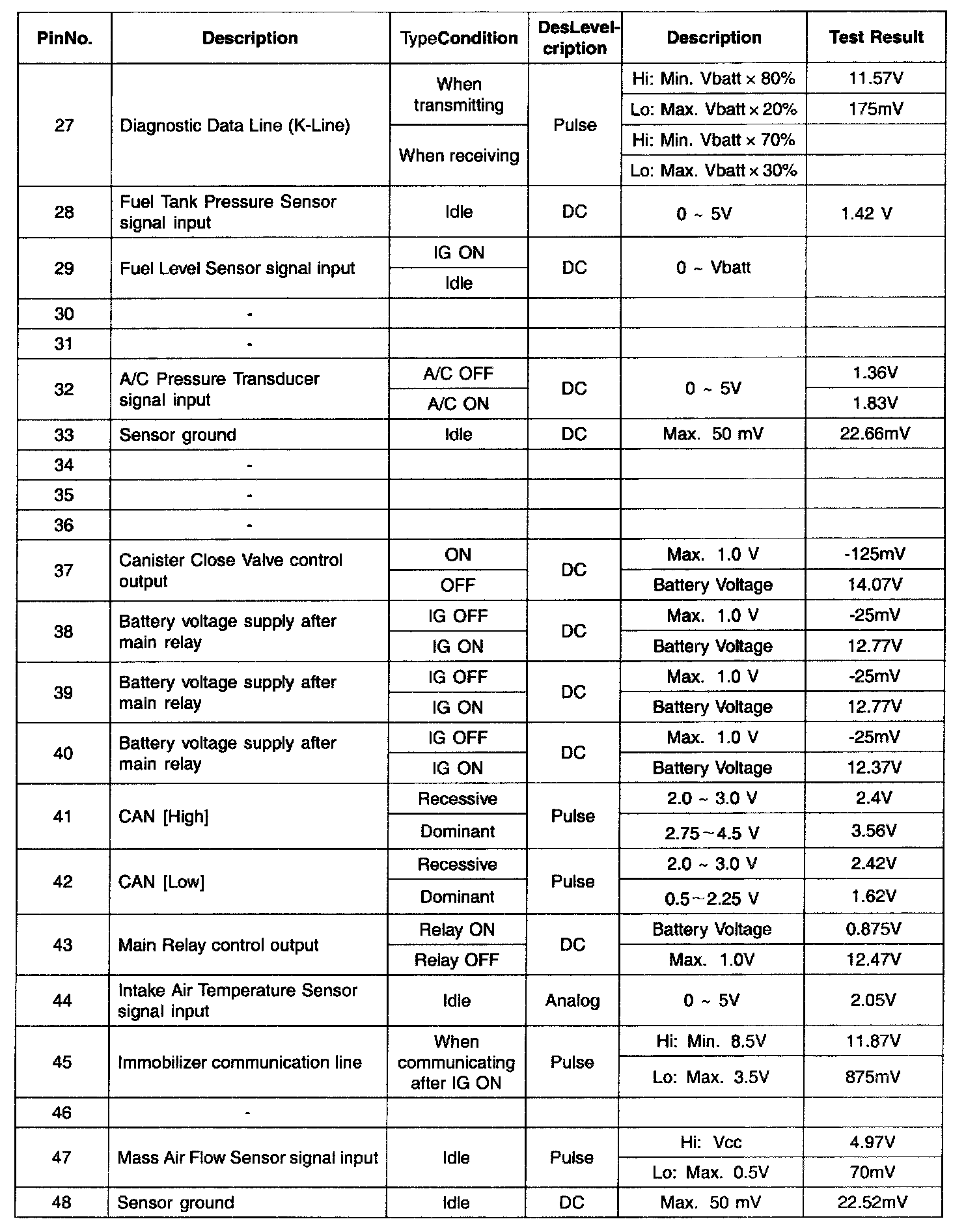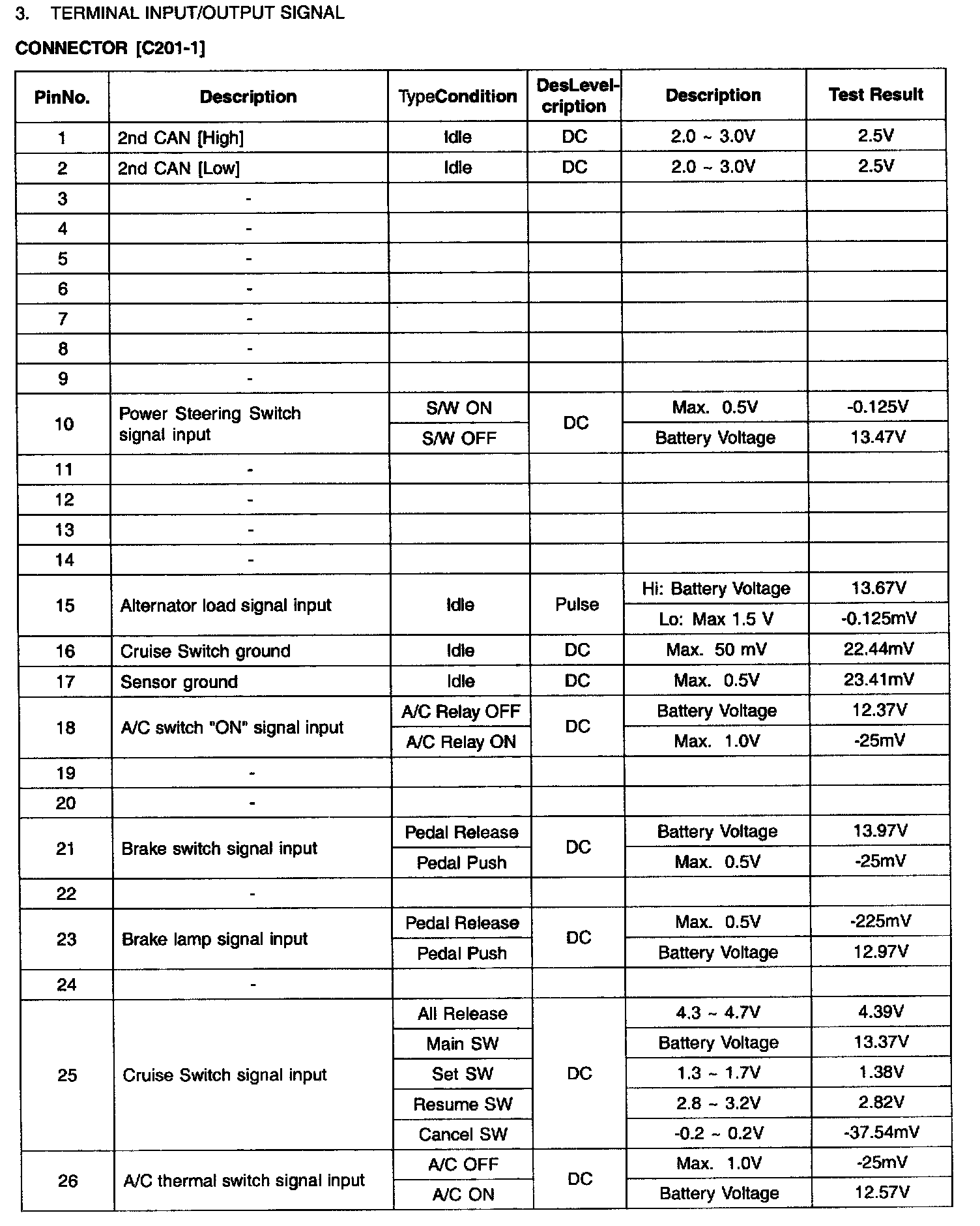 PCM TERMINAL INPUT/OUTPUT SIGNAL - CONNECTOR (C201-1)