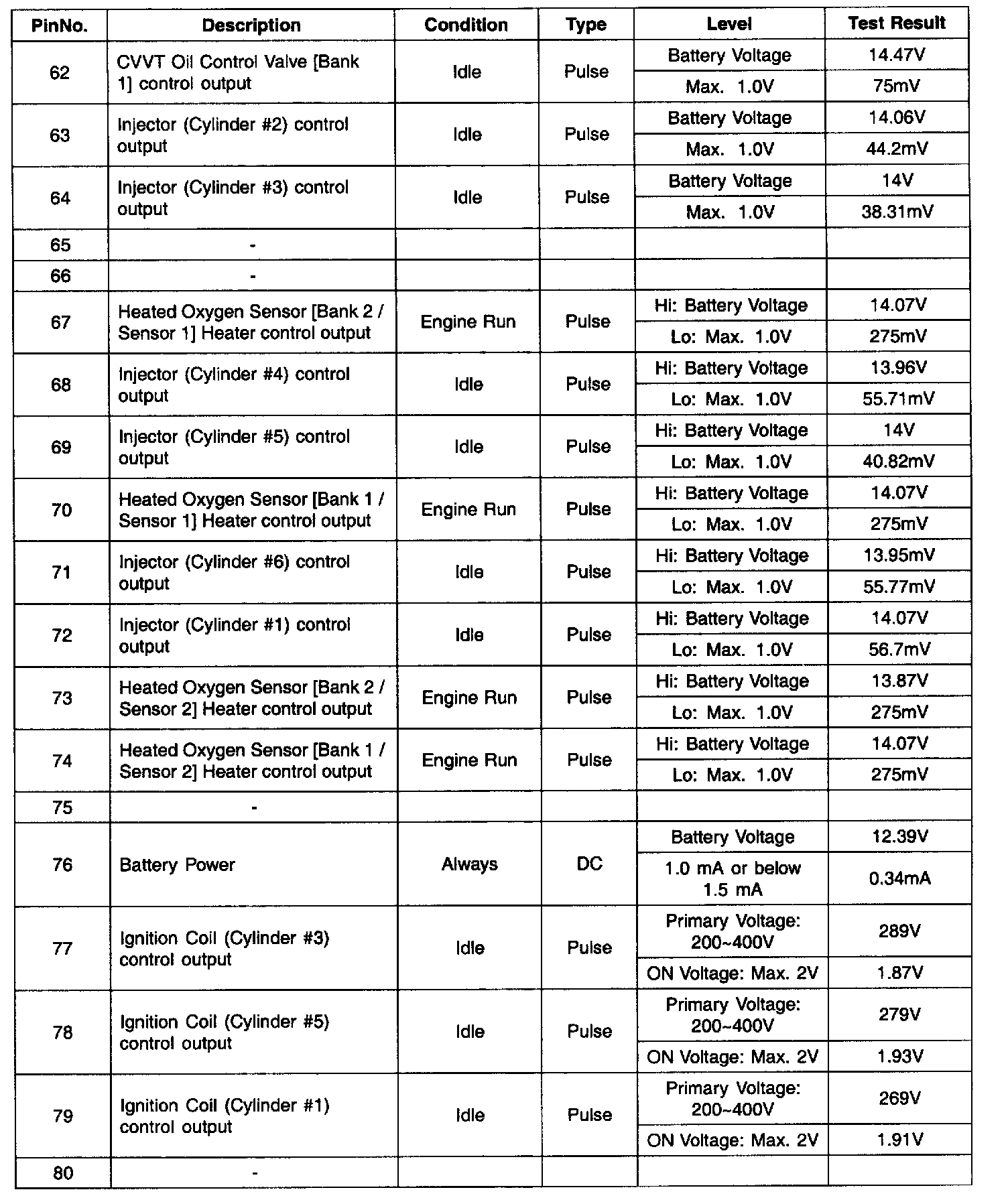 PCM Terminal Input/Output Signal - C201-1 (Part 3):
