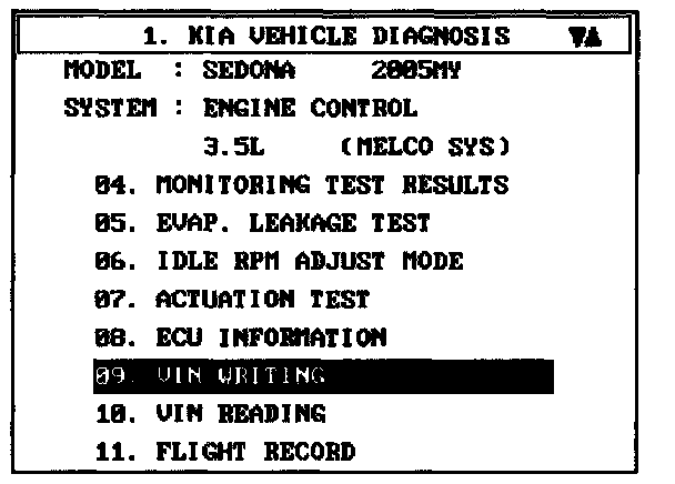 1. Select "Vehicle" and "Engine" (For example, SEDONA 3.5L V6).
