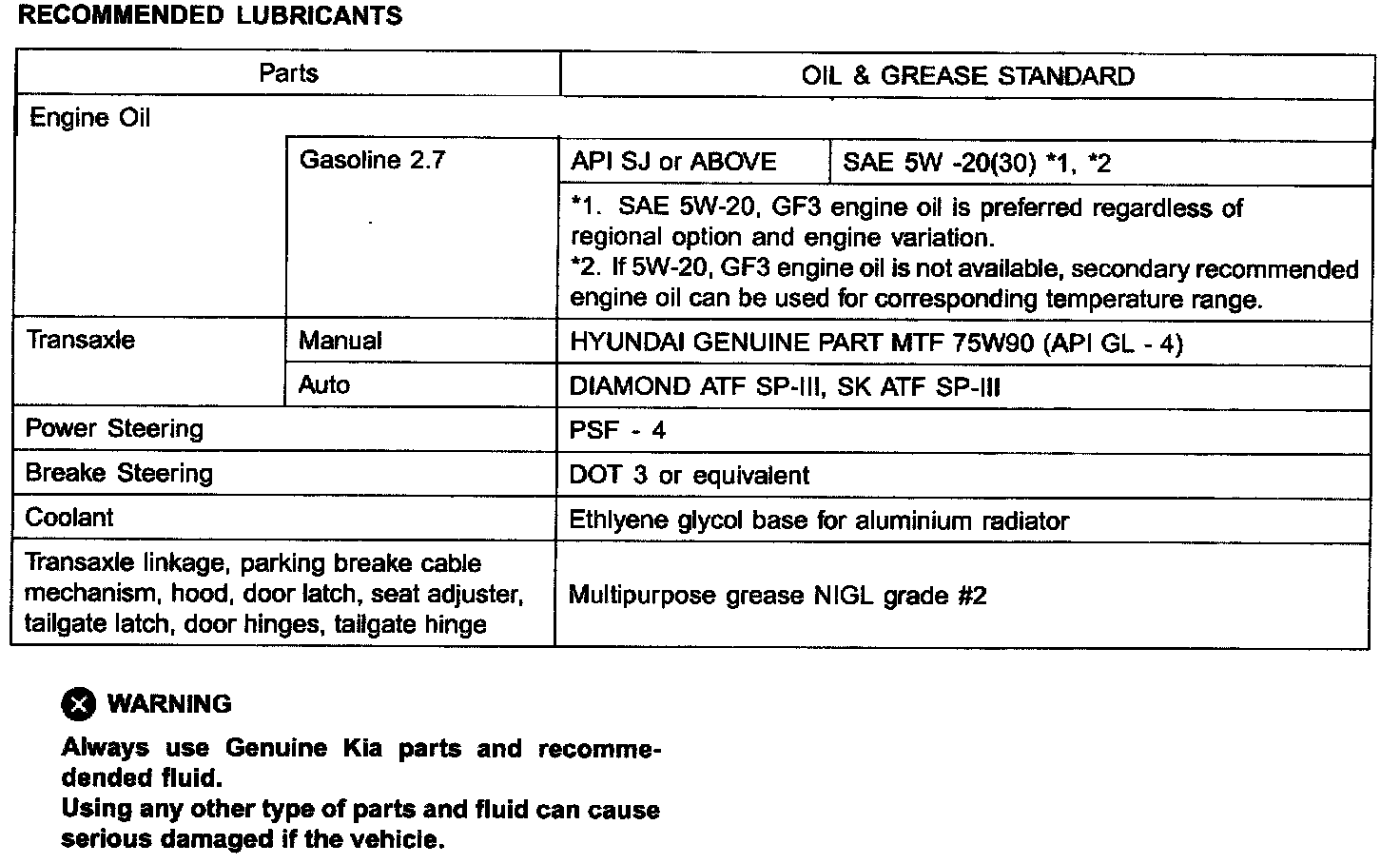 Recommended Lubricants:
