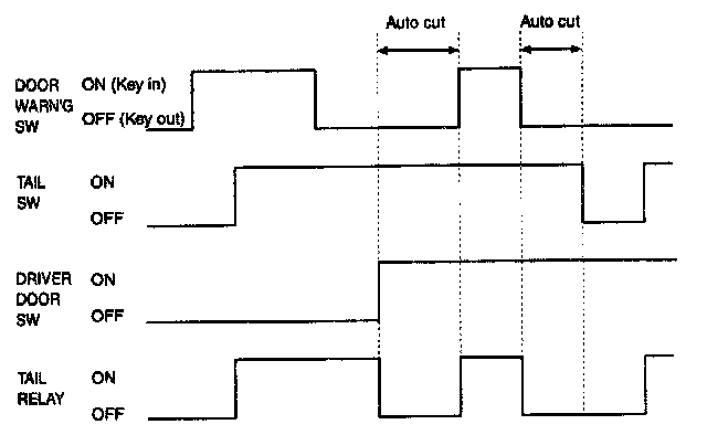 3. When the tail lamp is cut automatically and the tail lamp switch is turned OFF and ON, the tail lamp illuminates and auto cut function is cancelled.