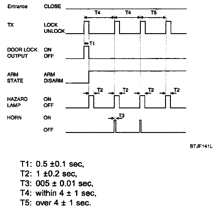 4. When the TX Lock signal is received, the door Lock output shall be ON for T1.