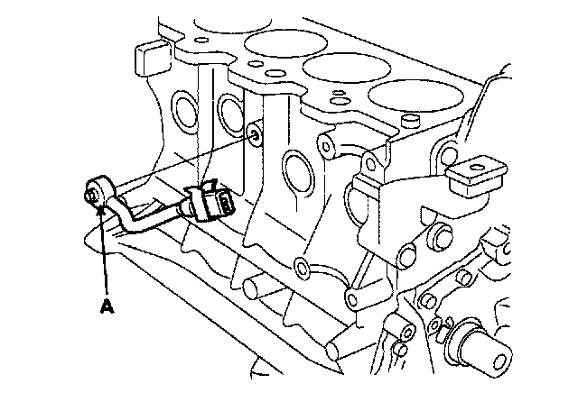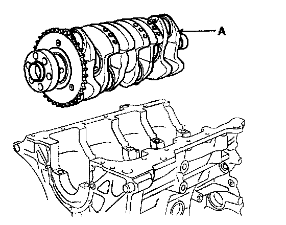 19. Lift the crankshaft (A) out of the engine, being careful not to damage journals.