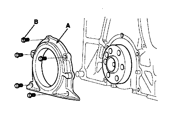 Remove the 5 bolts (B) and rear oil seal case (A).