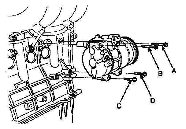 1. Make sure of the length of compressor mounting bolts, and then tighten it A->B->C->D order.