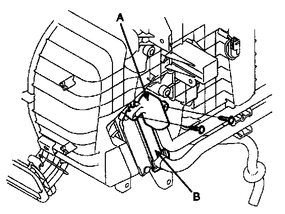 4. Remove the bolts (A) and the expansion valve (B) from the evaporator core.