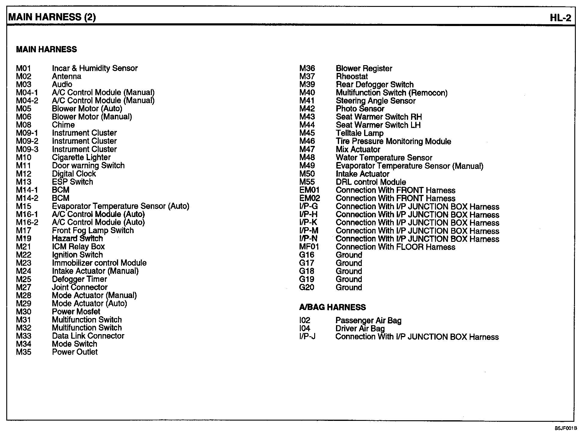 Main Harness Index: