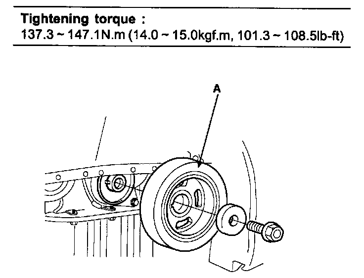 Tightening torque: 19.6 - 26.5 Nm (2.0 - 2.7 kgf.m, 14.5 - 19.5 ft. lbs.)