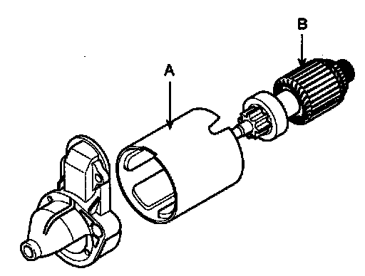 4. Remove the rear bracket (A) and brush holder assembly (B).