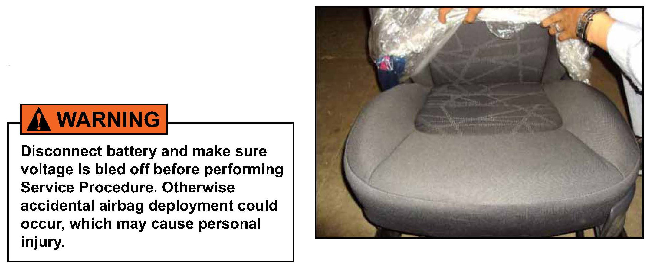 To correct this issue, follow the repair procedure below to replace the mat in the passenger side seat cushion. Verify that the vehicle is in the affected range by VIN and production date, and then perform the Service Procedure outlined in this bulletin.