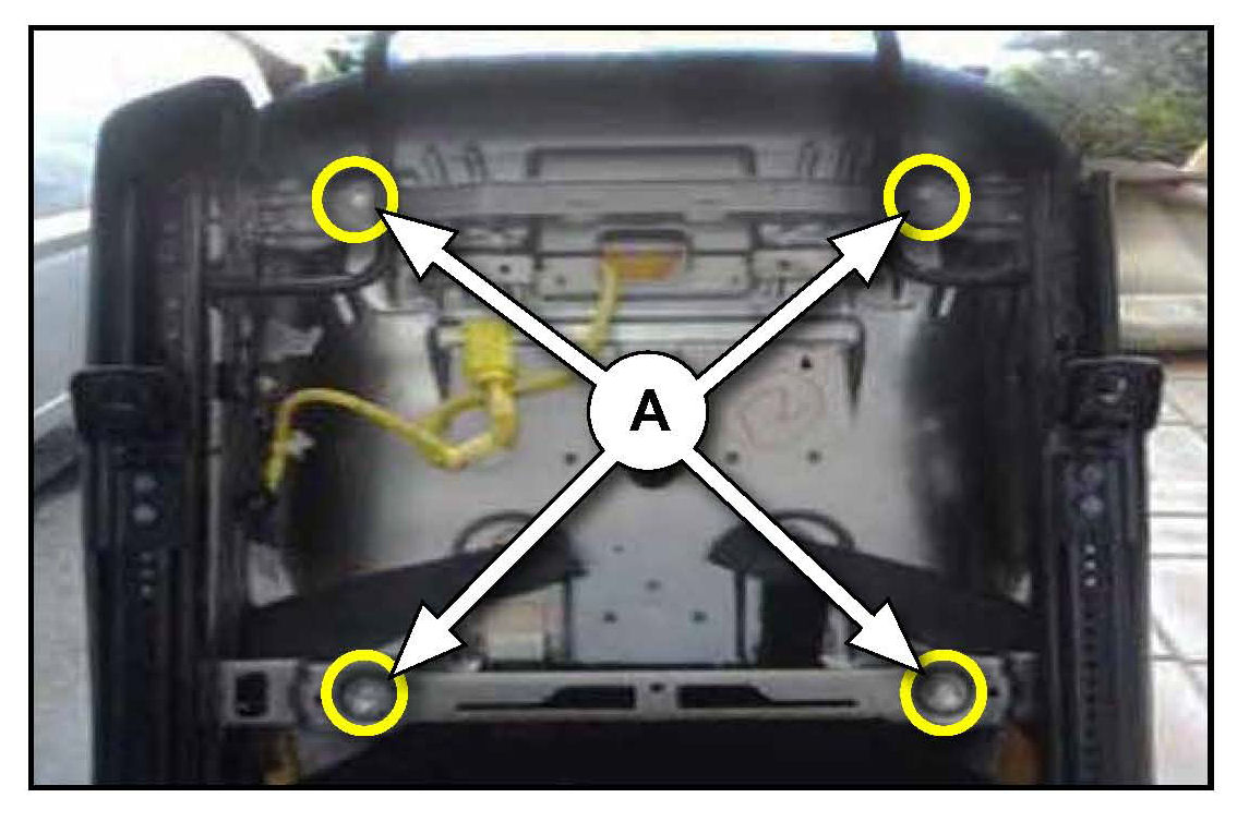 2. Remove the seat cushion assembly from the seat tract frame by removing the four (4) nuts (A).