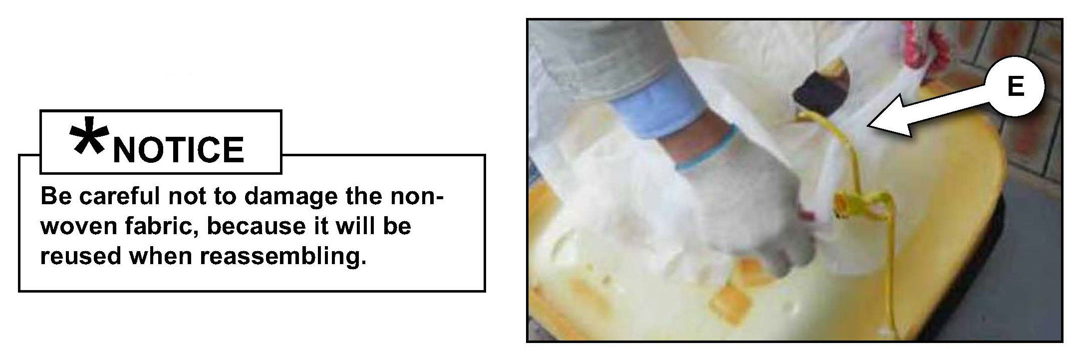 4. Remove the seat covering by unhooking the cushion covering hooks (C) marked on the photo (Front, right side, left side).