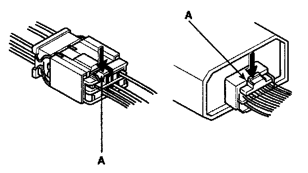 8. Before connecting connectors, make sure the terminals (A) are in place and not bent.