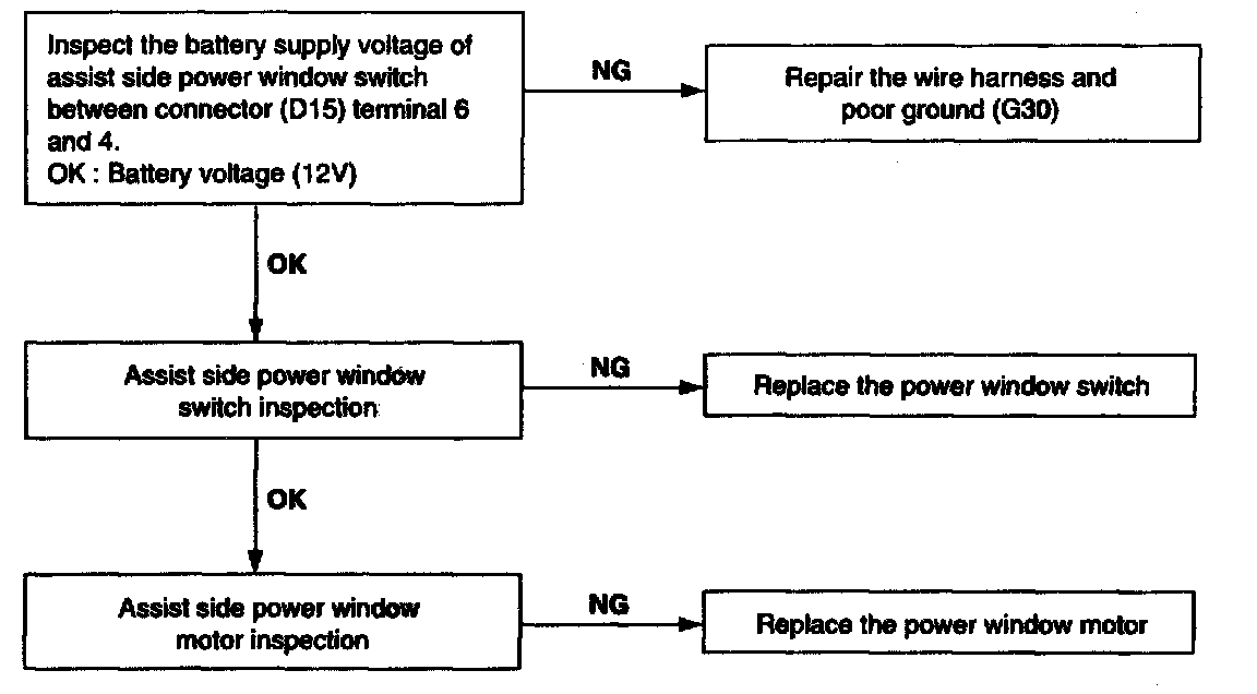 Assist side window does not operate.