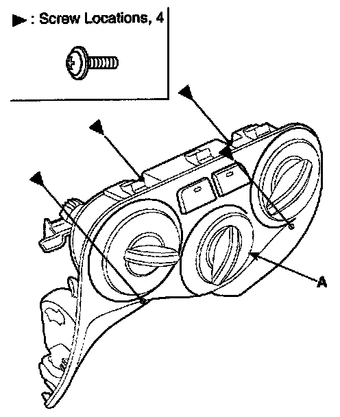 4. Loosen the heater control unit 0mounting screw. Remove the heater control unit (A).