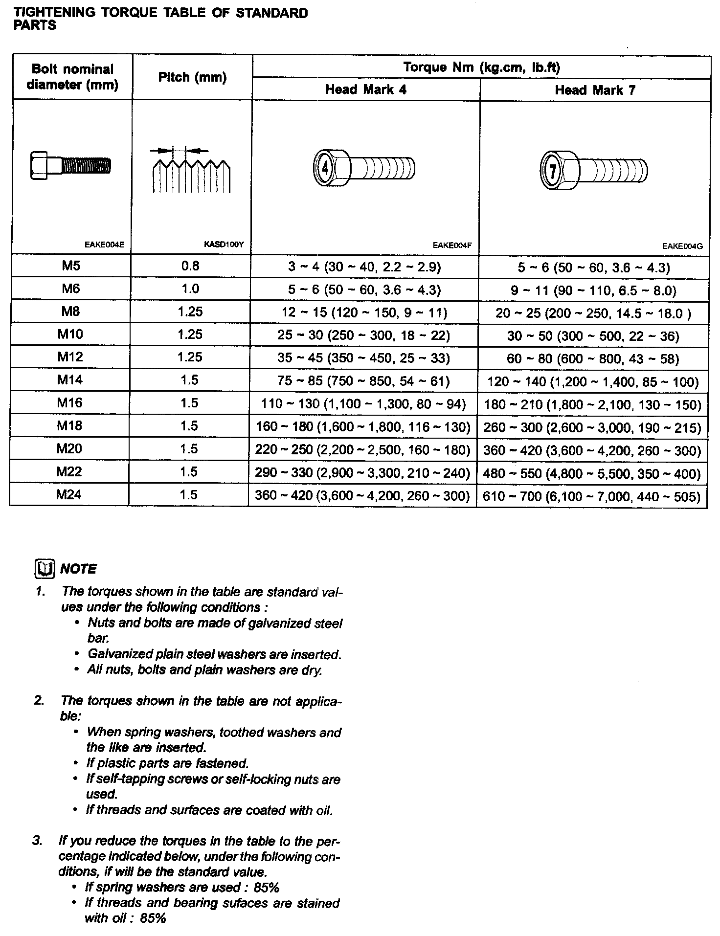 Tightening Torque Table Of Standard Parts: