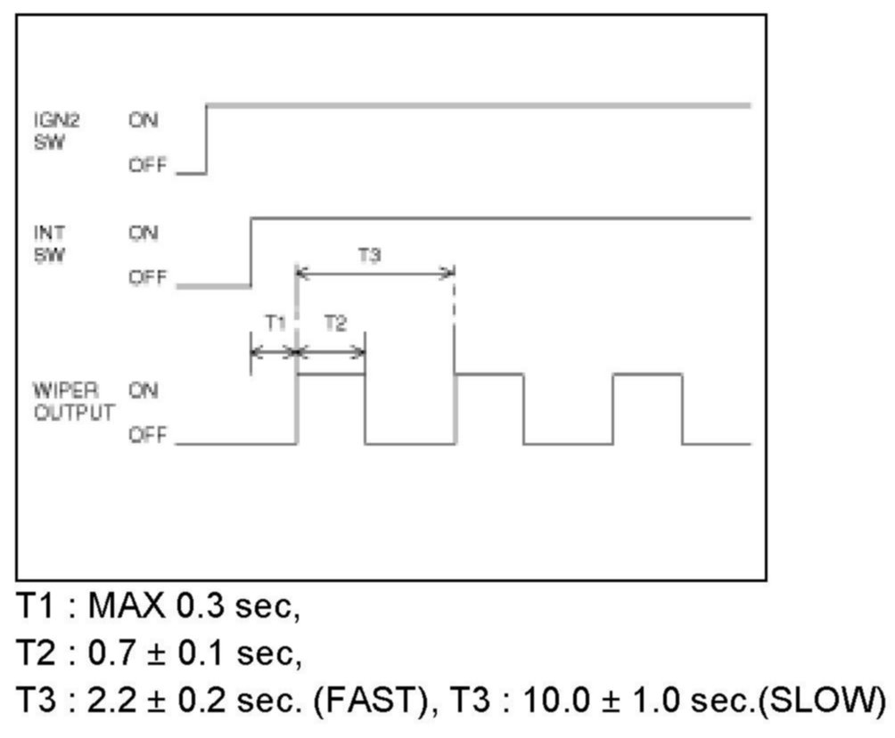 2. When the intermittent wiper switch is ON, if the ignition switch is turned ON wiper output is ON.