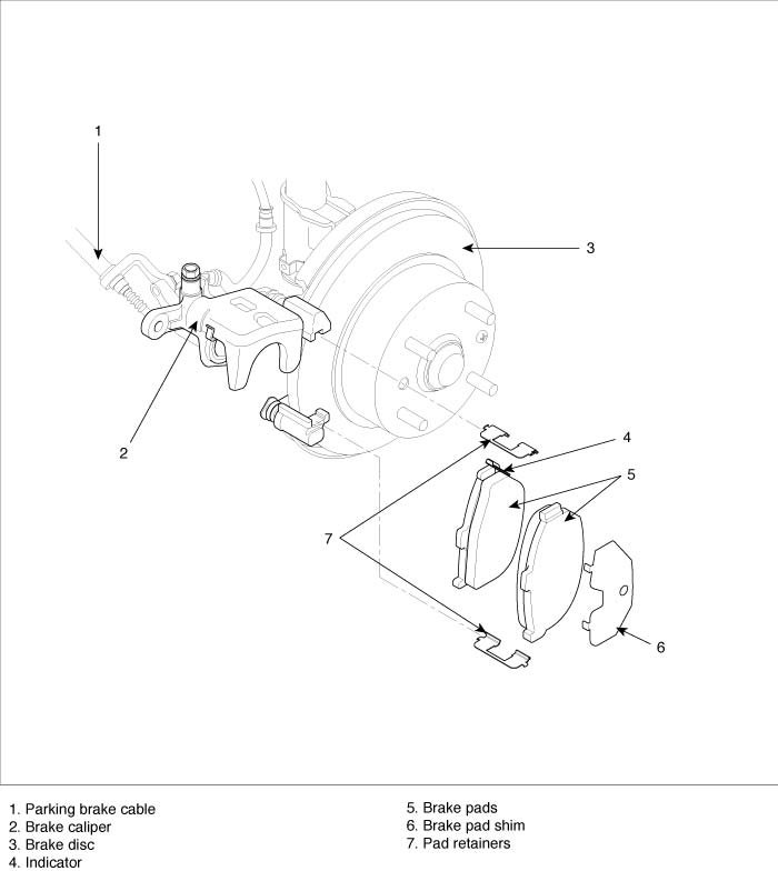 NOTE: Engagement of the brake may require a greater pedal stroke immediately after the brake pads have been replaced as a set. Several applications of the brake pedal will restore the normal pedal stroke.