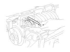 Using a gasket scraper, remove all the gasket material from the top surface of the cylinder block.