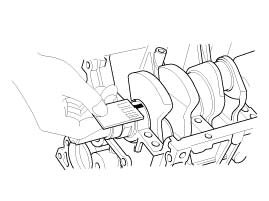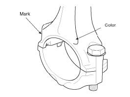 6) If the plastigage measures too wide or too narrow, remove the upper and lower bearing and then install a new bearings with the same color mark.
