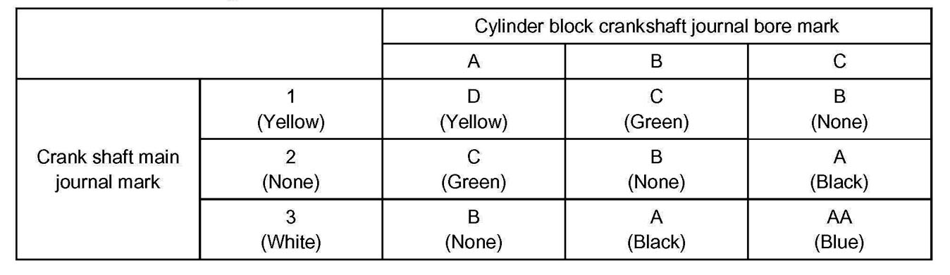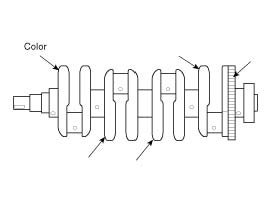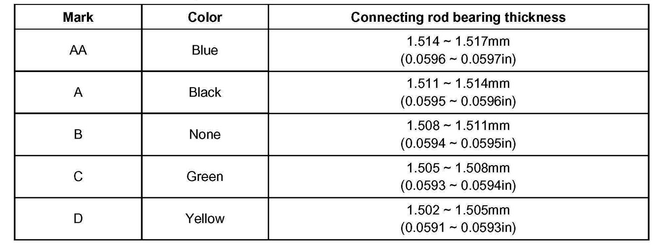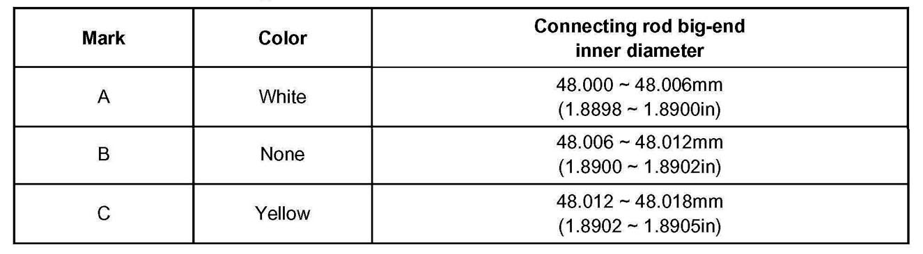 9) If the plastigage measures too wide or too narrow, remove the upper and lower bearing and then install a new bearings with the same color mark.