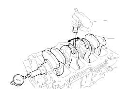 Using a dial indicator, measure the thrust clearance while prying the crankshaft back and forth with a screwdriver.